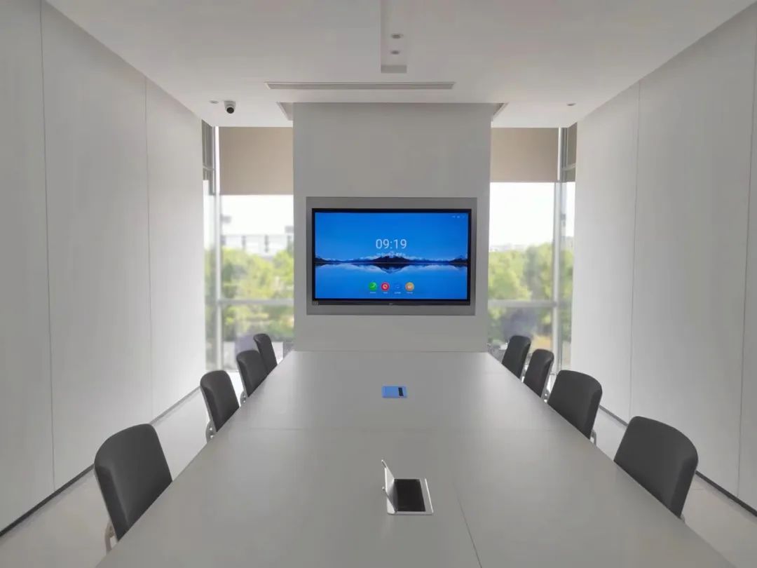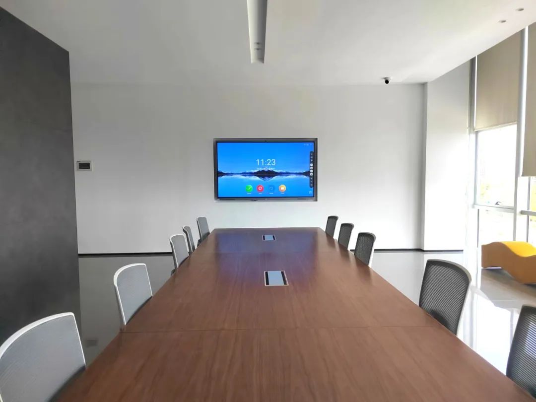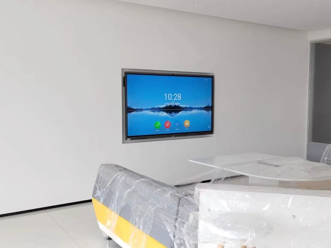 另一個(gè)受制會(huì)議室安裝環(huán)境限制,選擇了65英寸的智能會(huì)議平板,因?yàn)闄C(jī)器必須安裝在承重墻上。